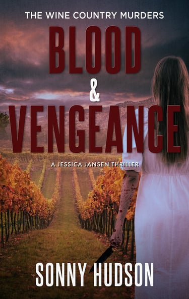My latest book, Blood & Vengeance, is the third book in my ‘Jessica Jansen Thriller’ series, and when I first started with these characters in the first book, The Murder Game, I planned to continue to explore their relationship and their adventures for at least 4-5 books. Blood & Vengeance became just a natural extension of the series as it followed a chronological story timeline for after the events in Book #2, Glitz. Glamour. Murder. That is, at the end of G-G-M, my main protagonists have just finished the production of the movie they were helping to produce and write, that was based on the first case they had worked together (The Murder Game). Now that the movie was ‘in the can’ (in Hollywood-speak), they were ready for a nice, relaxing vacation to decompress and enjoy each other’s company. Unfortunately for them, but fortunately for me and my readers, another serial killer case gets dropped in their lap while vacationing in California wine country.